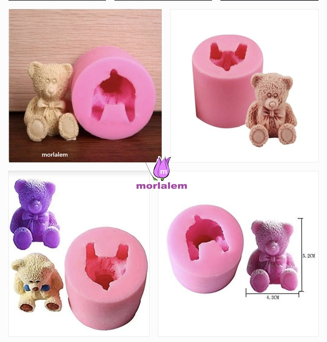 3 Boyutlu 4,8cm Ayıcık 3d Ayı Silikon Kalıp K-1181, Taş Tozu Polyester Sabun Alçı Mum Kalıbı