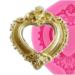 8,5cm Mini Minyatür Kalp Çerçeve Silikon Kalıp K-1237, Kokulu Taş Sabun Alçı Mum Kalıbı