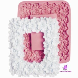 Çiçekli Çerçeve 15cm Çerçeve Silikon Kalıp K-049, Kokulu Taş Polyester Reçine Alçı Kalıbı