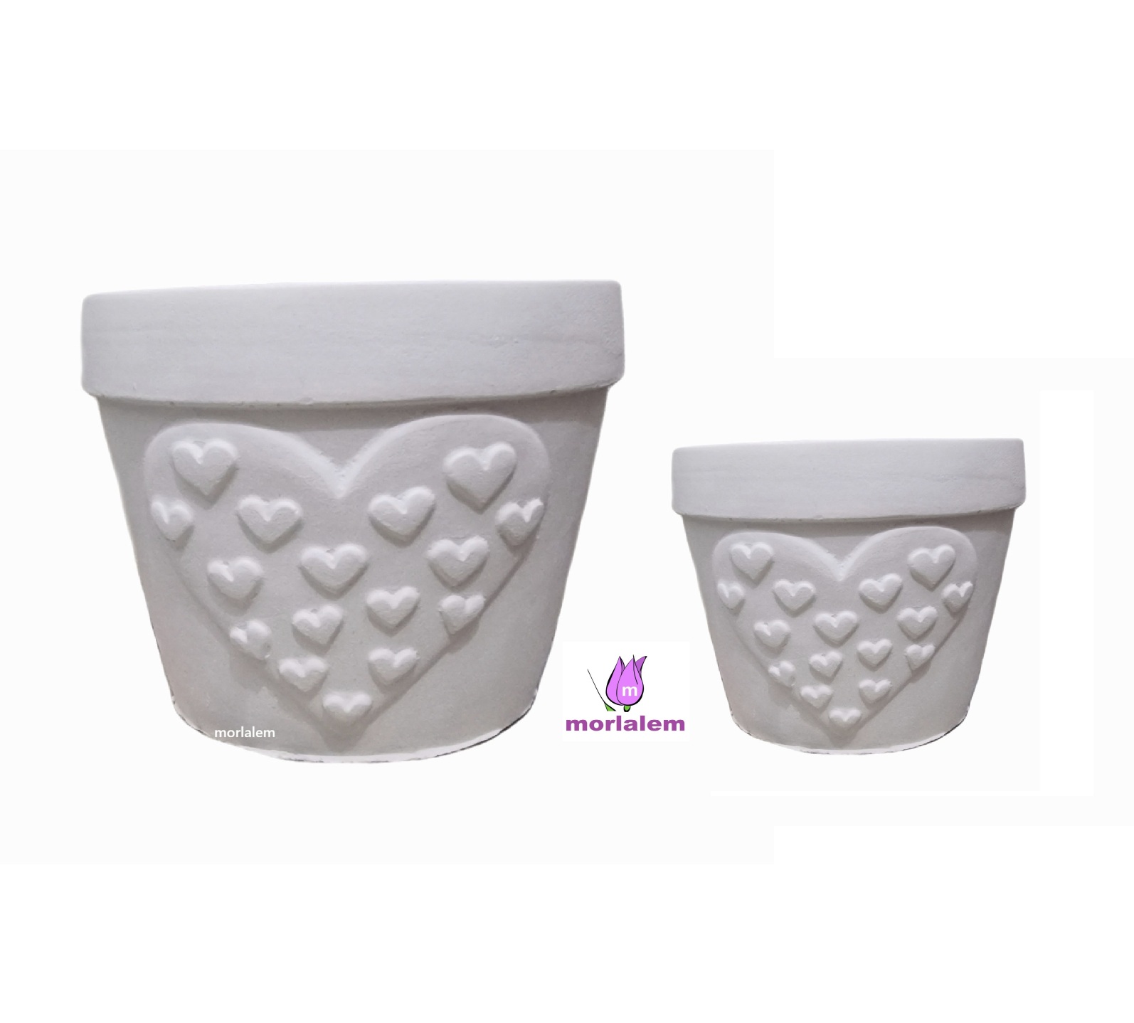 2’li Kalp Kabartmalı Saksı Seti Silikon Kalıp K-1277AB, Taş Tozu Polyester Çimento Alçı Kalıbı