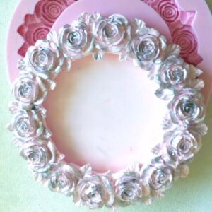 Gül Kabartmalı 16cm Yuvarlak Çerçeve Silikon Kalıp K-914